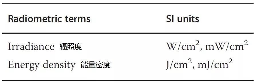 對(duì)于UV光源,有兩個(gè)重要的指標(biāo):輻照度(Irradiance)和能量密度(Energy Density)。輻照度和傳送帶的速度無(wú)關(guān),是指單位面積特定波長(zhǎng)區(qū)間的輻射通量。而能量密度則和傳送帶的速度成反比,同等條件下速度越快,能量密度越低。這兩個(gè)指標(biāo)具有完全不同的國(guó)標(biāo)(SI)單位。